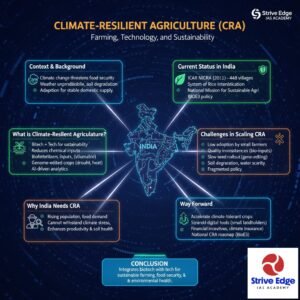 • Climate change threatens India’s food security through weather unpredictability, soil degradation, and rising pollution.