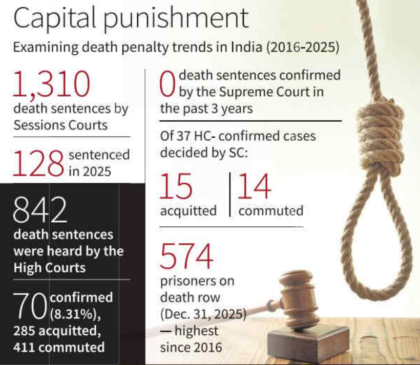 - Study analysed death penalty trends across India from 2016 to 2025.