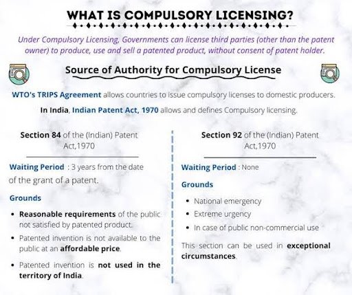 • This undermines India’s historic defence of compulsory licensing at the WTO and TRIPS forums.