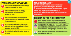 • India reduced GDP emissions intensity by about 36% by 2020, exceeding targets early.