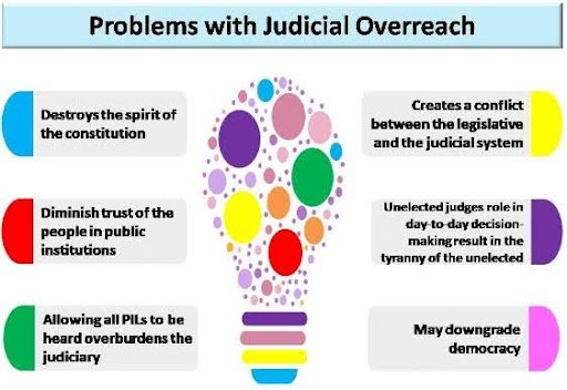 - Encroaches upon the domain of the legislature and executive, disturbing the constitutional balance.