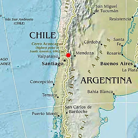 • Lies close to the Argentina–Chile border.
