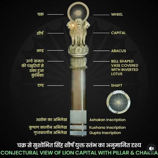 - Ashokan Pillar with Lion Capital (India’s National Emblem).