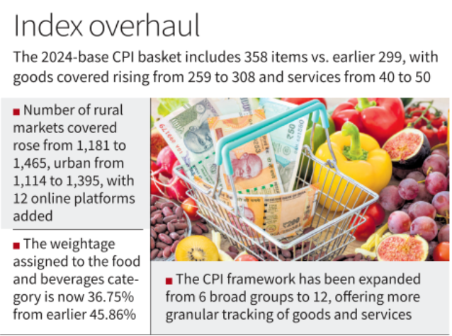 - CPI basket updated using Household Consumption Expenditure Survey (HCES) 2023–24.