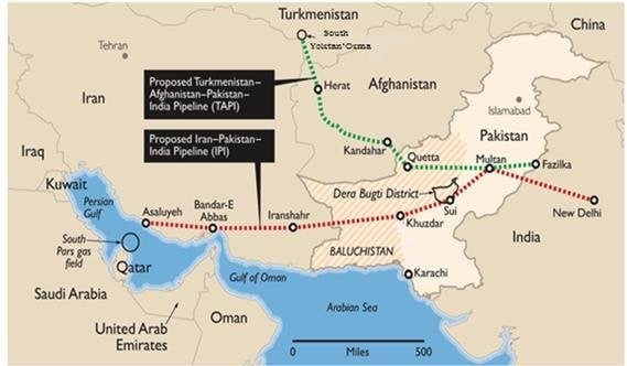 - It aims to transport natural gas from Iran’s South Pars field to energy-deficient South Asian countries.