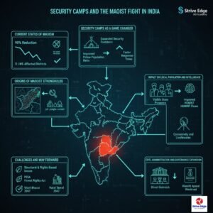 • Tribal marginalisation and conflicts over jal–jungle–zameen shaped the insurgency.