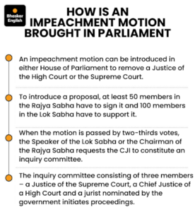 • Impeachment refers to removal of Supreme Court or High Court judges.