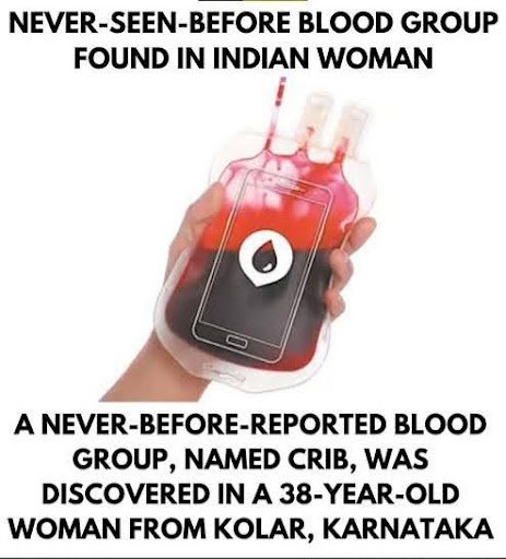 Why in News: A new rare blood group has been discovered and officially named ‘CRIB’.